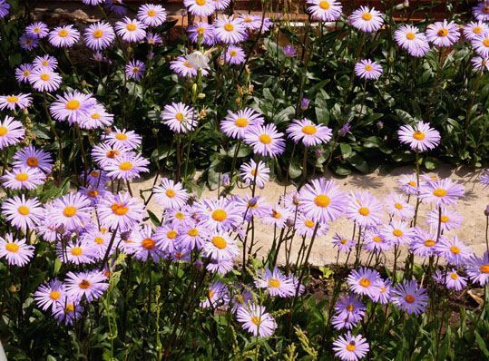 Красива альпийская астра будет смотреться с хвойными растениями, например, туей, коникой и т.д. Для создания клумбы постоянного цветения подойдут однолетние растения, многолетнии растения, например, карликовые спиреи, сирень, астра высокорослая, ирисы, лиатрисы, люпины, энотера