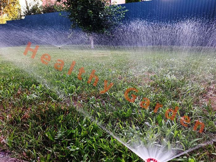 Систему дождевателей используют для полива газона! Так как всю площадь газона надо поливать обильно на протяжении почти всего сезона, проще всего это делать дождевателями! Это связано с тем, что дождеватель разбрызгивает воду веером равномерно по радиусу захвата дуги водной струи! Что обеспечивает равномерный полив газона!