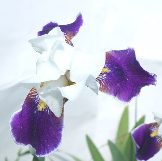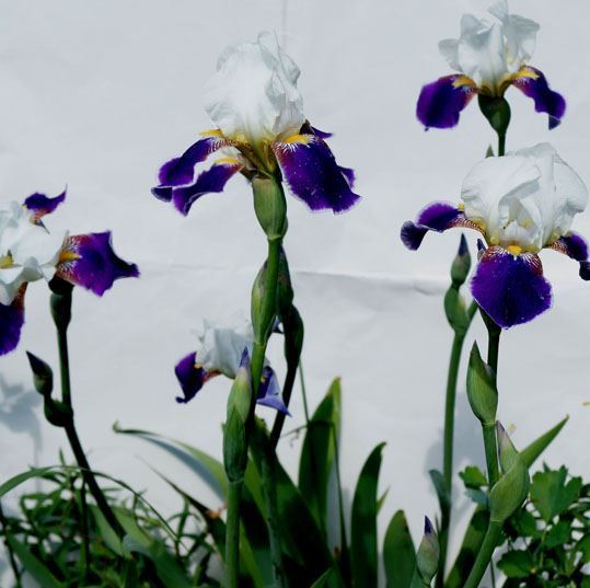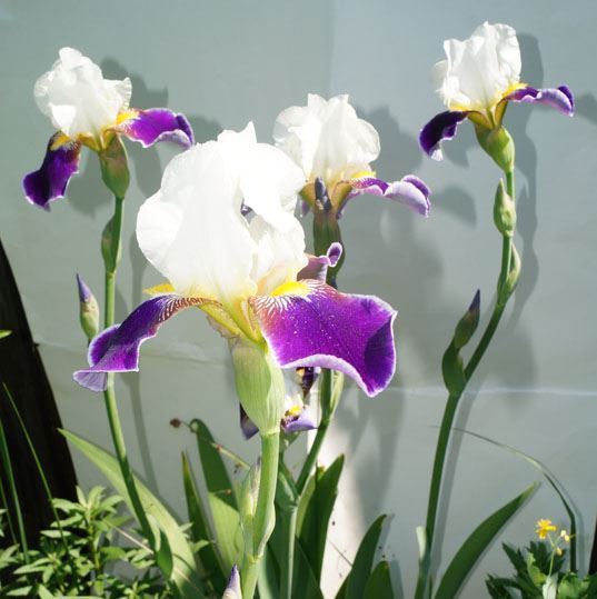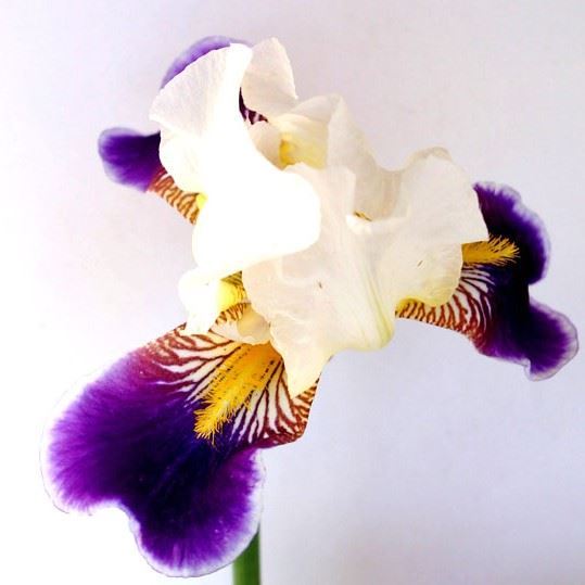 Ирис яркое, нарядное растения. Высота цветоноса в пределах 90 см. белая с ярко-фиолетовым язычком. На цветоносе образуется несколько цветов.