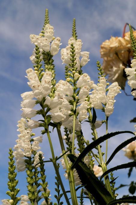 Физостегия - многолетнее корневищное растение. Высота растения 80-100 см. Стебель прямой. Листья ланцетные. Цветы белые собраны в колосовидное соцветие. Цветение, длительное, 30-45 дней. Цветет в июле-августе.