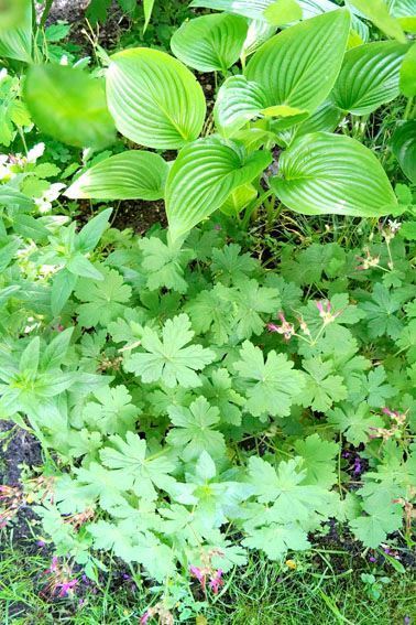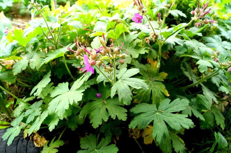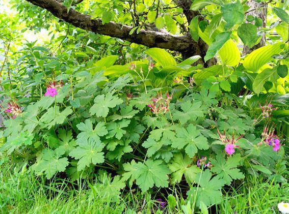 Герань быстро разрастается, и ее плотные кусты препятствуют росту сорняков.