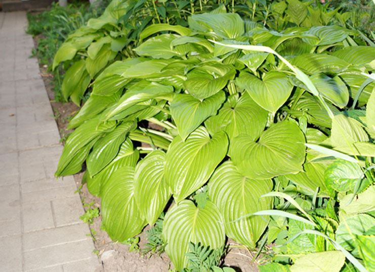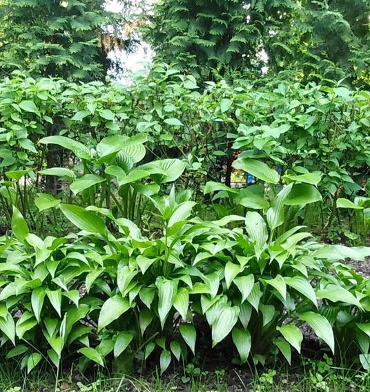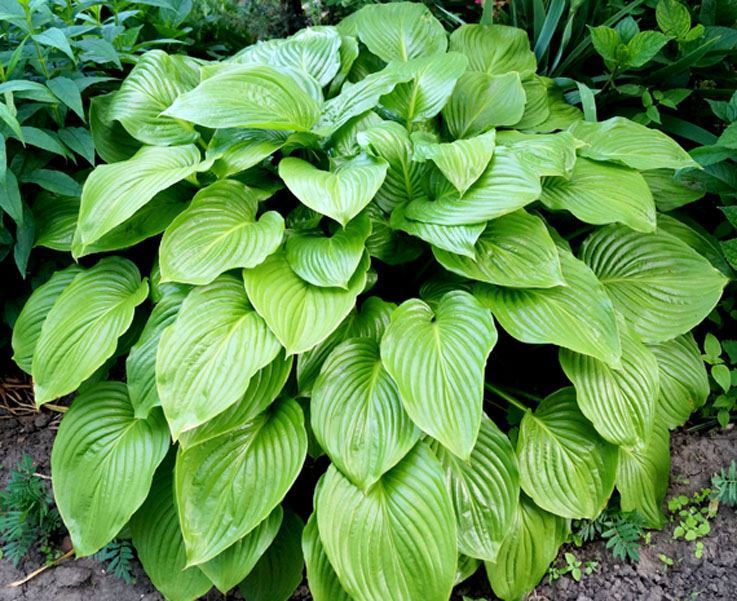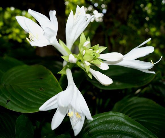 Лиственно-декоративное растение до 60 см высотой и до 100 см в диаметре. Листья нежные, яйцевидно-округлые (28 см х 18 см), остроконечные, с сердцевидным основанием, блестящие, ярко-зелёные, листья огромные. Цветки крупные до 10 см длиной, длинно-трубчатые, воронковидные, белые, ароматные, на прочных цветоносах до 80 см длиной. Цветёт в августе