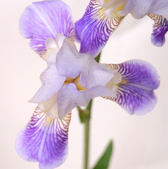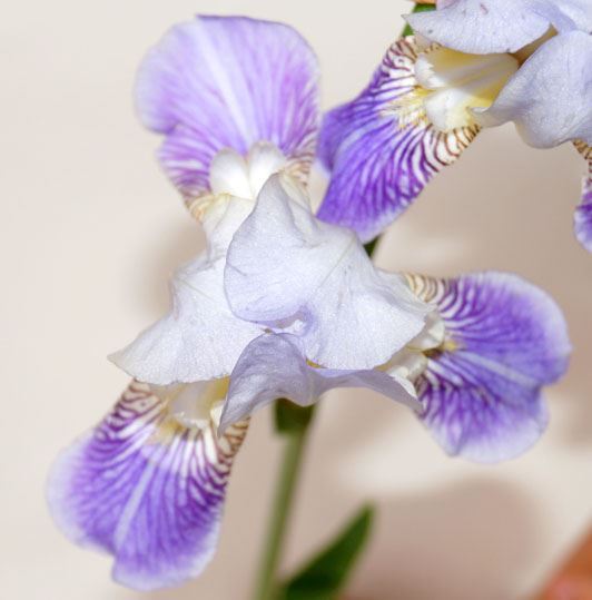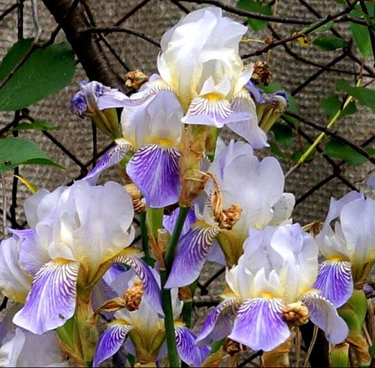 Высота цветоноса ириса до 70 см. Цветки некрупные (если сравнивать с современными сортами), ароматные. Окраска цветов в основании фолов - нижних долей околоцветника, хорошо виден сиреневого цвета сетчатый рисунок, бородка желтая. Верхние доли околоцветника не сомкнутые образуют "арку" не "чистого" цвета светлые, основание с желтым налетом слегка заметным сетчатым рисунком. Цветок очень нежный трепещущий при малейшем дуновении ветерка. Неброский, но привлекает к себе внимание своим изяществом, обаянием, грациозностью. Цветет в начале лета июне.