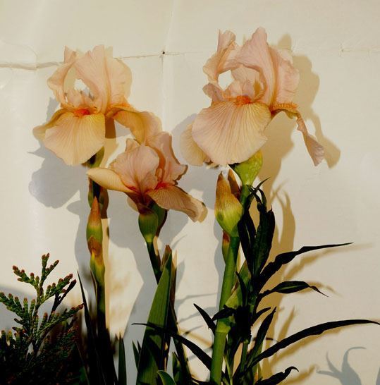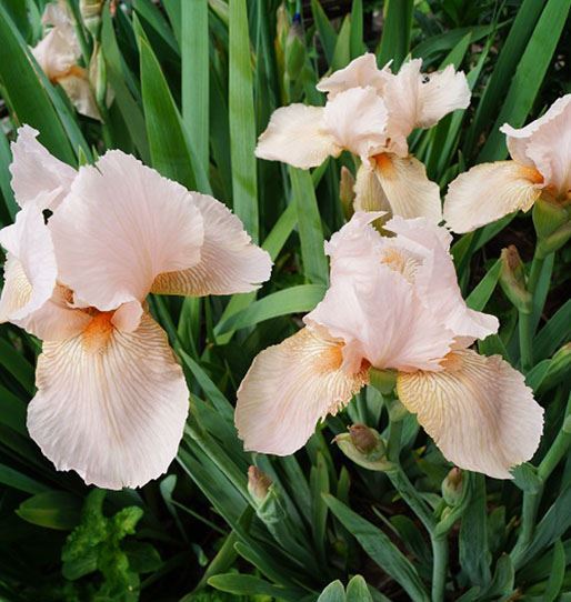 Ирис очень нежного розоватого цвета. В течение цветения цветок набирает более интенсивную окраску. Размер цветка 10-12 см. По несколько шт. на одном цветоносе (4-5 шт).