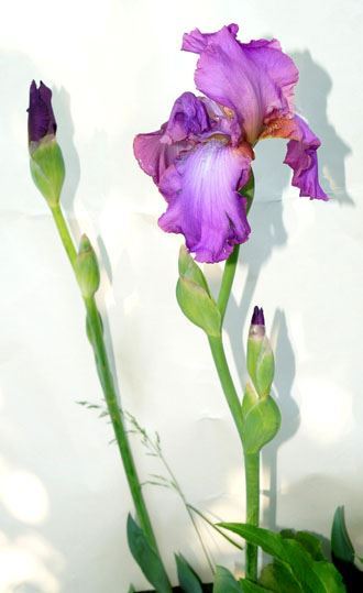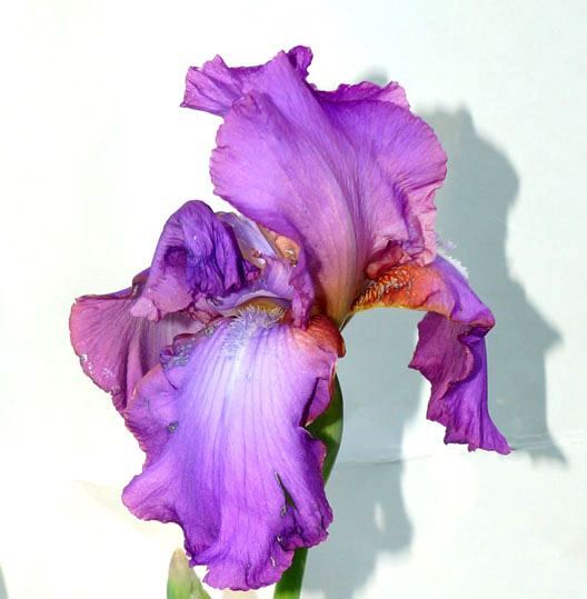 Бородатые ирисы современных сортов привлекают разнообразие оригинальных, с трудом поддающихся описанию расцветок. Данный ирис - одноцветный сорт, не обладает контрастной бородкой, но имеет насыщенный горящий цвет. Очень нарядный ирис с бахромчатыми краями. Цвет сиреневый со светлым пятном. Цветки бородатого ириса настолько яркие, что приковывают внимание даже в самых удаленных уголках сада
