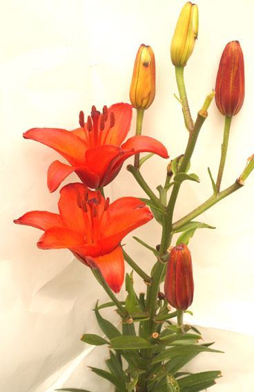 Лилия - луковичное многолетнее растение. Луковицы мелкие. Стебли прямые, облиственные с цветами до 25 шт. Листья линейные/ланцетовидные. Цветки одиночные собраны в метельчатые соцветия насыщенно оранжевого цвета до 11 см. Цветки направленны вверх имеют аромат.
